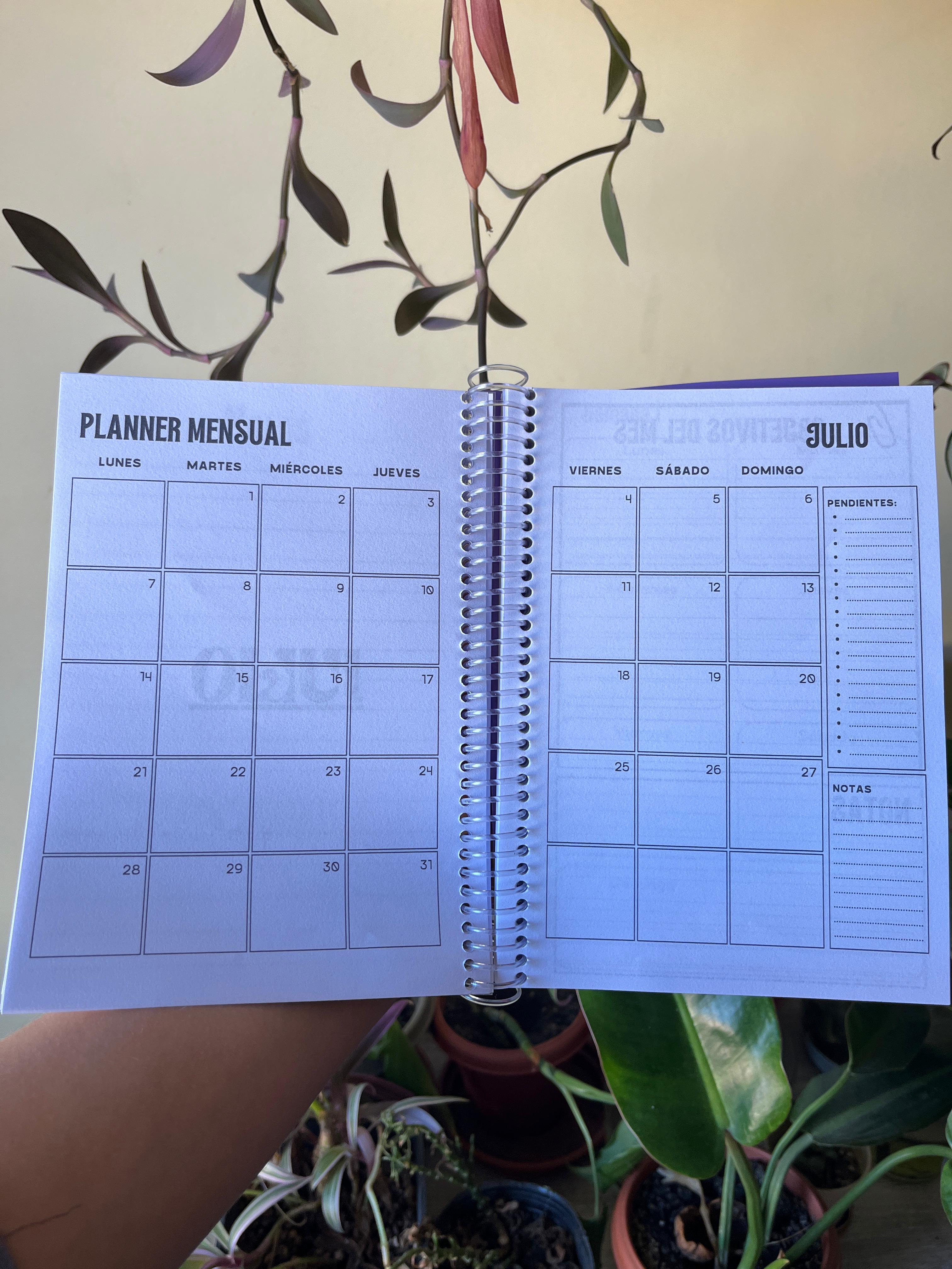 📅 Planner mensual con espacio para pendientes, notas y objetivos