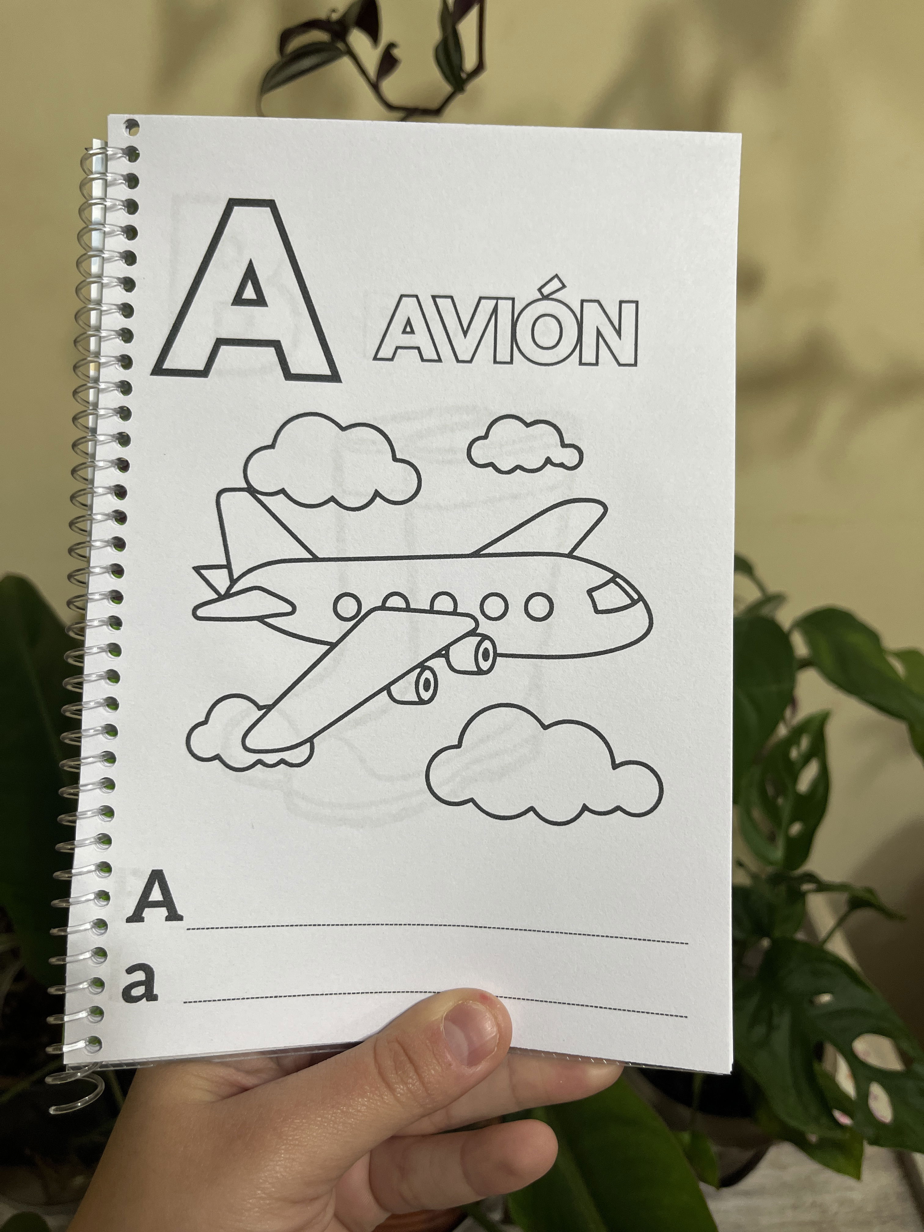Este cuaderno en formato PDF imprimible y coloreable es ideal para que los más pequeños aprendan el abecedario de manera divertida, creativa y práctica. Contiene una hoja por cada letra, con: