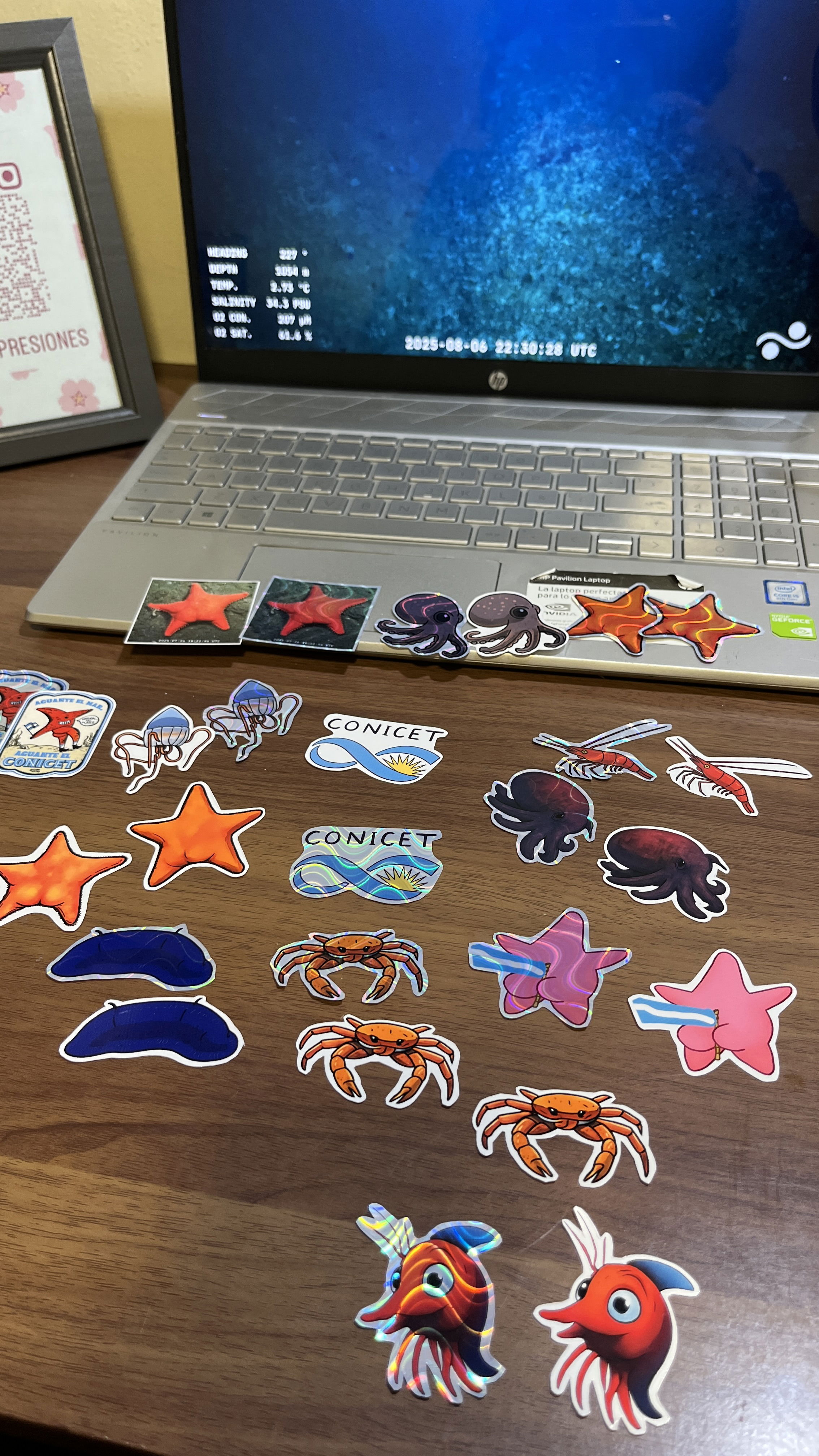 Llevate este divertido pack inspirado en los descubrimientos que los científicos del CONICET compartieron en su stream. Incluye ilustraciones únicas de la famosa estrella culona, pulpo, batatita, cangrejos, camarones, calamar y el logo del CONICET.
